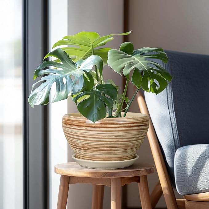 • Ceramic Planter Pot with Drainage Hole and Saucer: There is a drainage hole at the bottom of the indoor planter, which can discharge excess water and benefit the growth of plants; the lightweight ceramic tray can keep your desktop clean