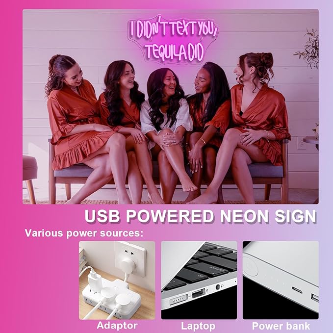 - Easy to use: The "I didn't text you, tequila did" neon light is powered by a USB cable, made of acrylic material and features two reserved holes for easy wall mounting or tabletop placement. Simply press the switch to illuminate the LED sign and brighten up your room