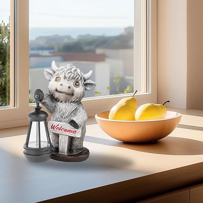 - Wide Application: Highland Cow Outdoor Solar Figurine Lights have a wide range of applicability; you can place them in your front yards, lawns, patios, porches, front steps, balconies, flower beds, stairs, poolside, potted plants, windowsills, or indoors as ornaments.