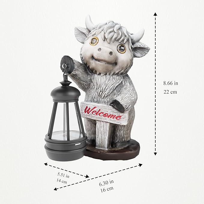 - Best Gifts: The Highland Cow Solar Figurine Lights are ideal gifts for mothers, grandparents, daughters, sisters, boyfriends, wedding anniversaries, childrenโs birthdays, mothersโ birthdays, Motherโs Day, Fatherโs Day, Thanksgiving, Christmas and Valentineโs Day.