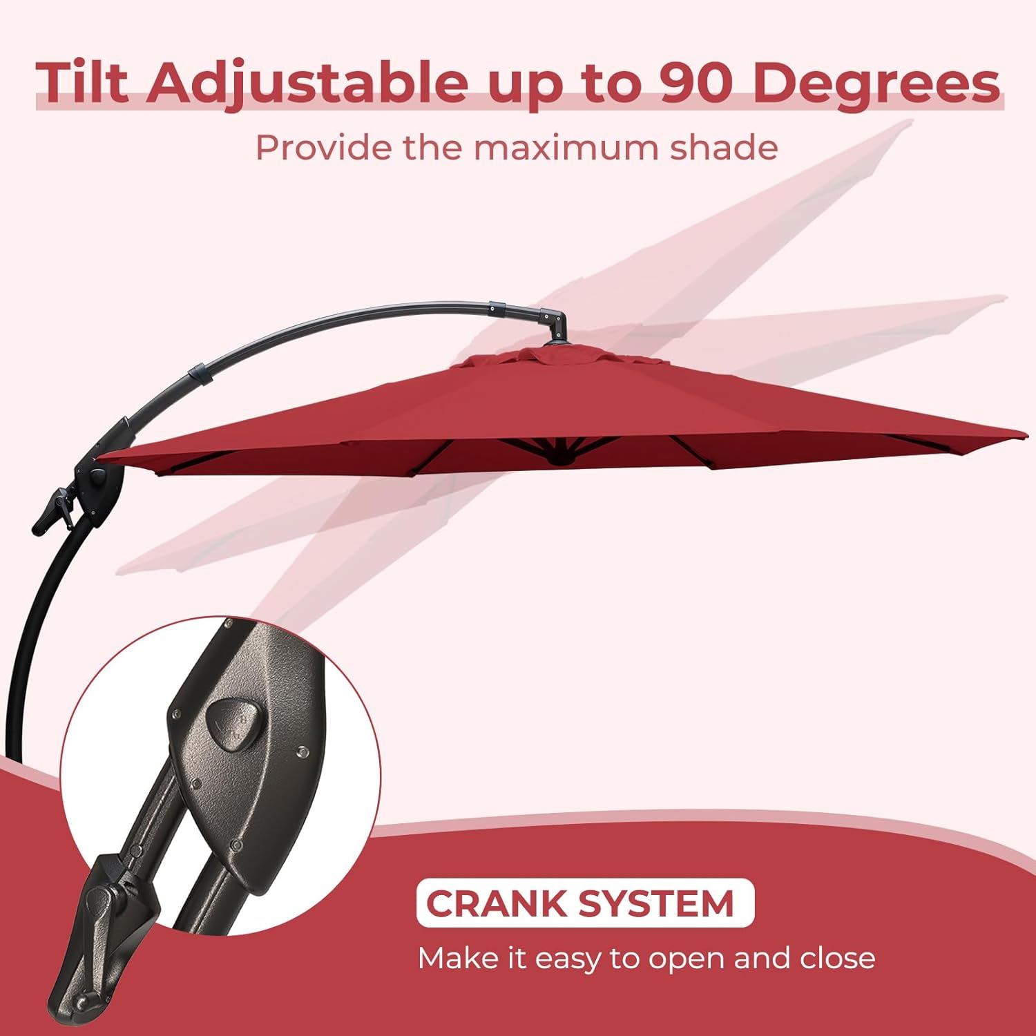 Grand patio 12FT Outdoor Cantilever Umbrella Large Round Aluminum Offset Umbrella with Base for Garden Deck Patio (Red, 12 FT)