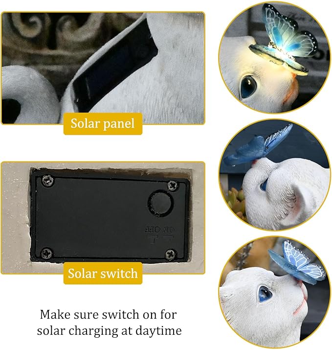 • ▶ Convenience - Cat solar light design will automatically charge and store energy during the daytime, only light up at night or in the dark automatically. You just push the OFF switch to ON for automatic activation at sundown.