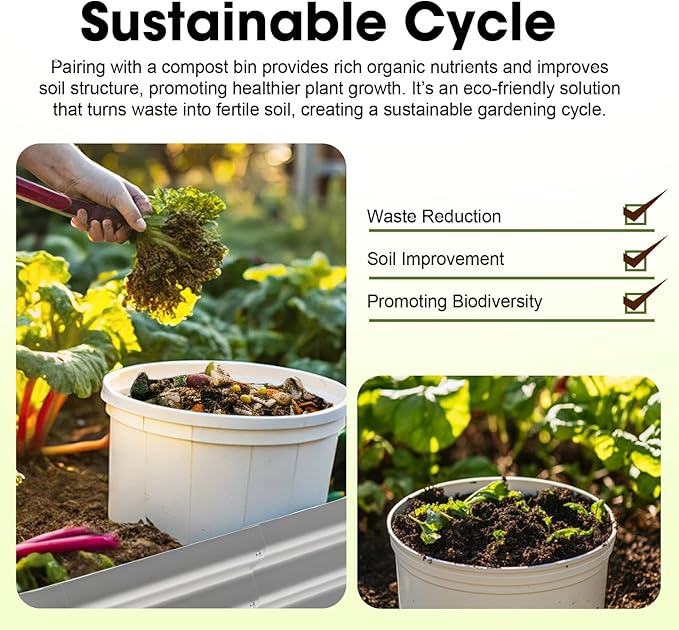 - 【Convenient & Organic】The height of the galvanized raised garden bed greatly reduces the burden of bending over to plant, making it easier for you to perform routine maintenance such as watering, fertilizing and weeding. In addition, our beds can be used with compost bins to effectively utilize kitchen waste and enjoy an organic lifestyle!