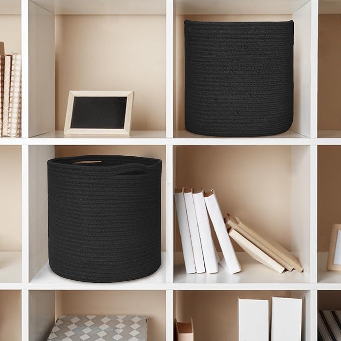 Cotton Rope Plant Basket, Woven Basket Planter for 11 inch Pot, Round Indoor Tree Pot Cover, Storage Bin Organizer, Modern Basket for Plants and Home Decor, 12.5”X12.5”, Black