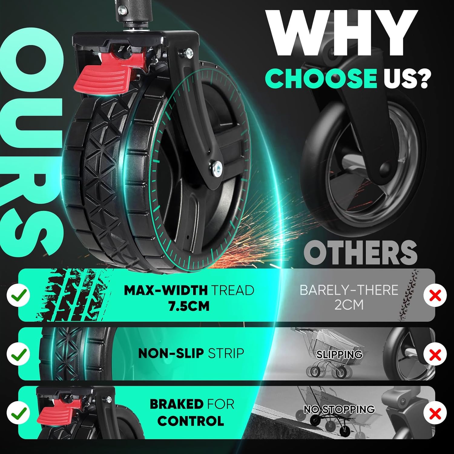- 【𝐆𝐨 𝐀𝐧𝐲𝐰𝐡𝐞𝐫𝐞 𝐖𝐡𝐞𝐞𝐥𝐬】: Featuring 𝟖" 𝐝𝐢𝐚𝐦𝐞𝐭𝐞𝐫 𝐰𝐡𝐞𝐞𝐥𝐬 𝐚𝐧𝐝 𝟑" 𝐰𝐢𝐝𝐞 𝐭𝐫𝐞𝐚𝐝𝐬, Sekey wagon glides effortlessly over sand and rough terrain. The 𝐚𝐧𝐭𝐢-𝐬𝐥𝐢𝐩 𝐫𝐮𝐛𝐛𝐞𝐫 strip enhances traction and reduces vibrations, while the 𝐛𝐮𝐢𝐥𝐭-𝐢𝐧 𝐛𝐫𝐚𝐤𝐞𝐬 provide reliable stopping power wherever you go.