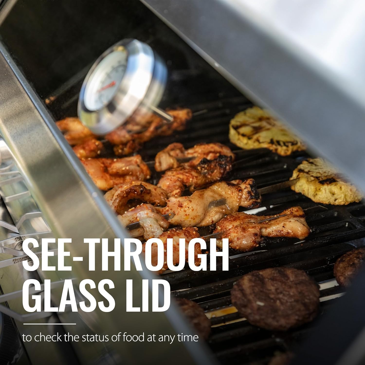 - Versatile and Convenient: It is a fantastic option for year-round cooking in any outdoor space including backyards, gardens and balconies; With full-size pull-out grease tray and grease cup, it is easy to clean