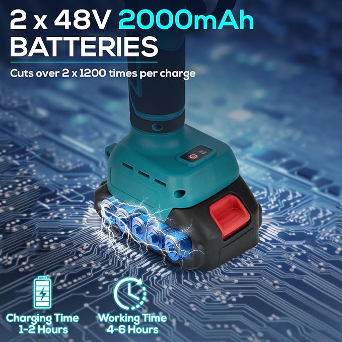 - Powerful Electric Pruning Shears: Designed for optimal cutting performance, these electric branch scissors effortlessly slice through branches up to 1.57 inches thick, ensuring your pruning tasks are completed quickly and efficiently. Equipped with a dual high-performance battery, our electric pruner provides consistent power for extended use