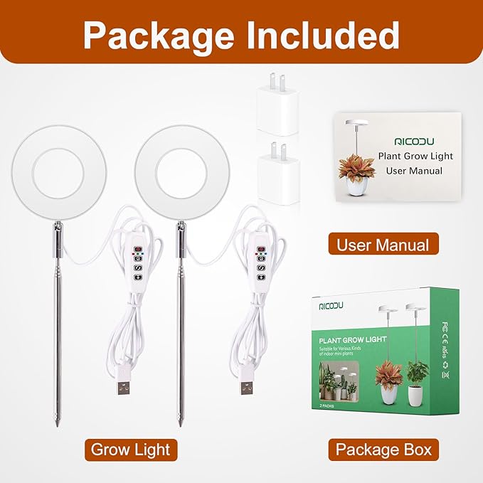 Grow Lights for Indoor Plants Small Potted - Full Spectrum, Auto 3/9/12H Timer, 10-Level Dimming & Adjustable Height - Compact Grow Light for Succulents, Herbs, Foliage in Home/Office (White,2PACKS)