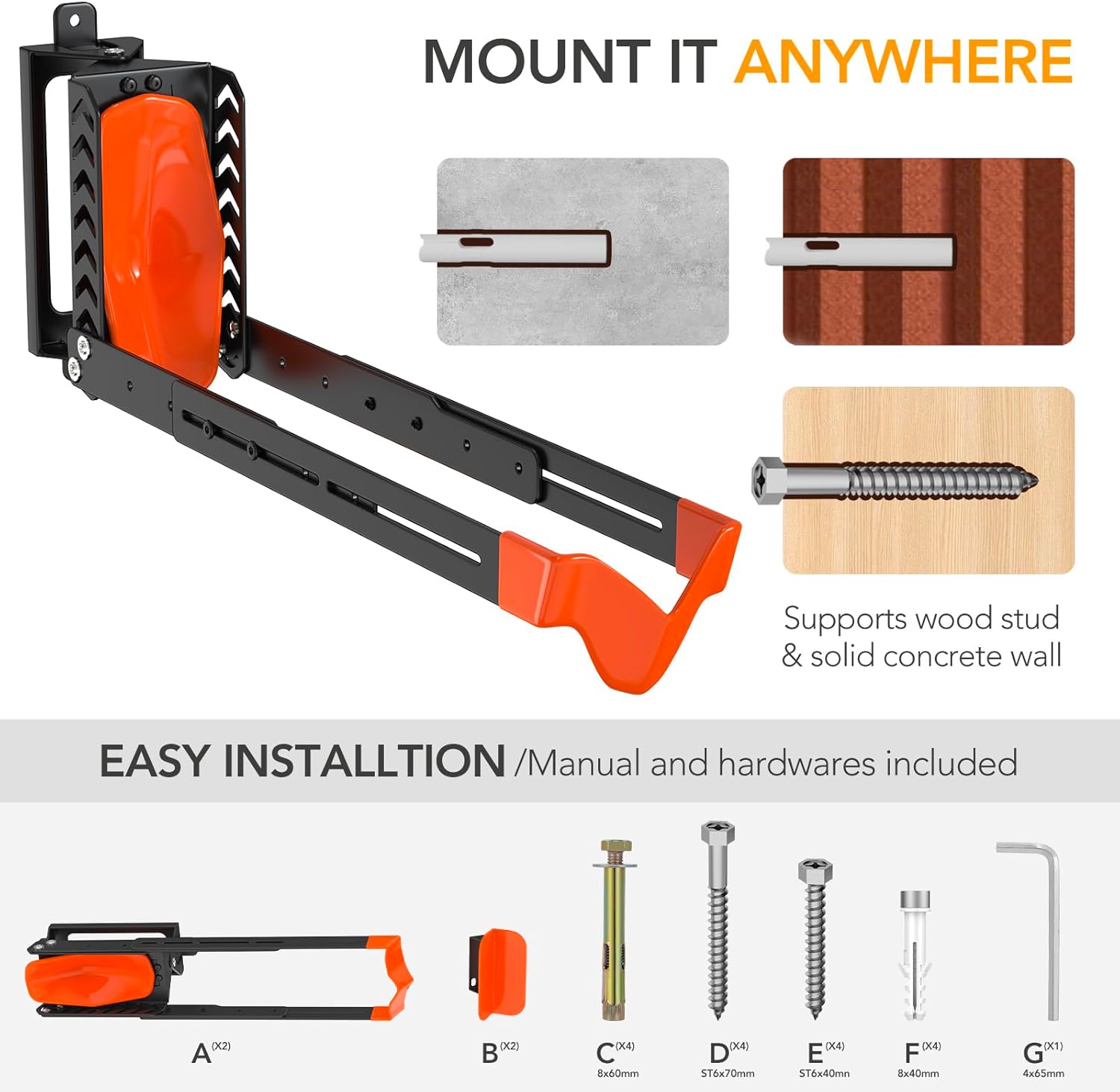 - Space-Saving Rotation Design๏ผยฑ65ยฐ rotation design efficiently utilizes floor and wall space, and is easy to load and unload with smooth rotation, perfect for apartments, garages, and small spaces.