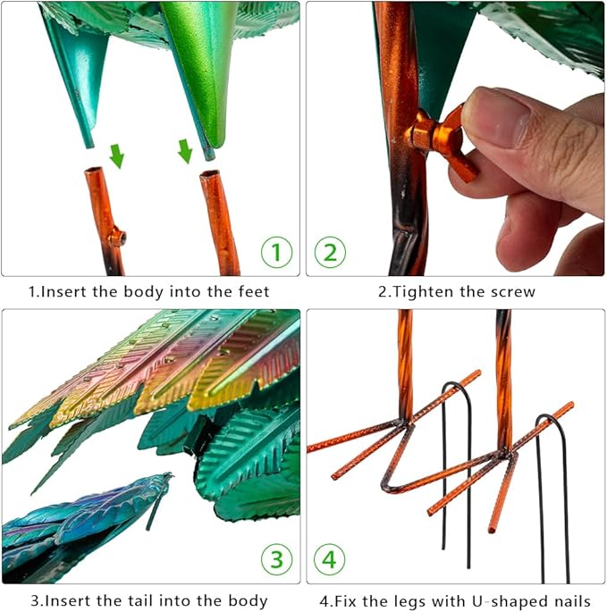 - Easy to Install: Simply connect the body, tail, and feet of the garden statue together, and then turn the screws to tighten the feet. It is also equipped with two U-shaped nails to ensure that the statue stand more steadily