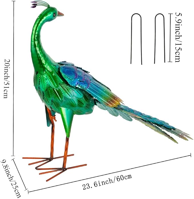 - Luxurious Design: 23.3" L x 9.8" W x 20" H. The outdoor statues are inspired by a peacock. The garden sculptures & statues are awesome decorations that will add a lot of color to the garden