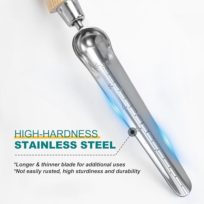 Berry&Bird Seeding Widger,Stainless Steel Seed Dibber Tool with Measuring Scale,Wooden Handle Garden Bulb Trowel for Seed Planting Tool Hand Shovel Planter Transplanter Dibber Soil Digginng