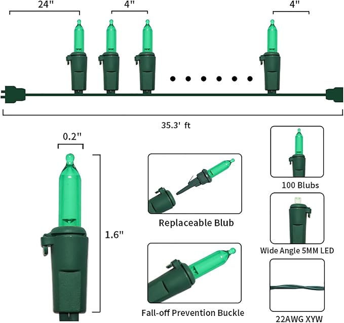- 【Indoor and Outdoor Widely Usage】: Christmas tree lights waterproof grade is IP44, Great for outdoor Christmas, Halloween, Thankgiving Day, St. Patrick's Day decorations