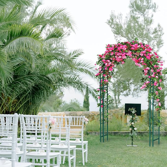 - 【Perfect for Outdoor Use】Our metal arch is mainly designed as an eye-catching decoration on garden, yard, patio or park. You can place it in front of your doorway or the pavement, making a perfect entry out of it. Or you can use it as a decorative backdrop for your wedding to bring you wonderful memories.Arch size: 57" wide x 88.6" high,7ft.