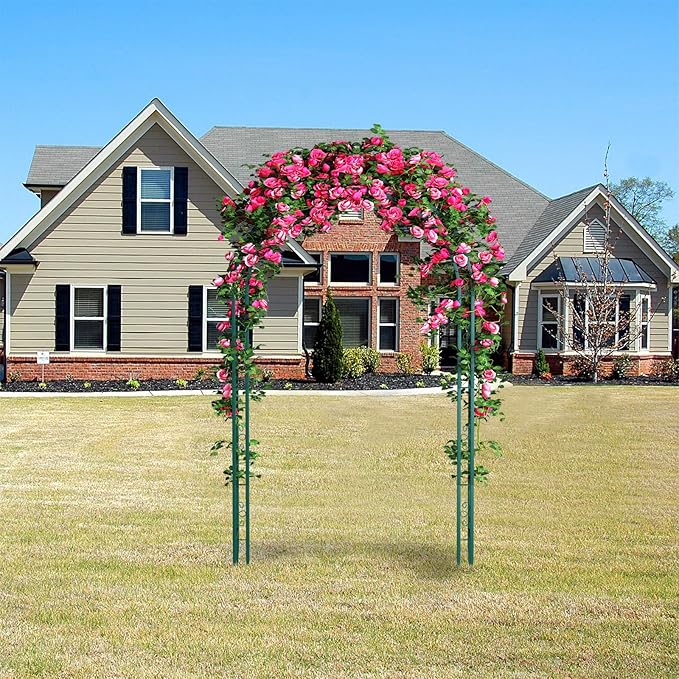 - 【A Plant Climbing Base】Featured with a mounting-plant-friendly shape, your vines, foliage, roses will happily find themselves flourish and bloom on this arch pergola.Straight standing arbor with lush green and intoxicating flowers on it, just can’t find anything better than this pastoral decoration.Whether It is Sunny or Rainy and Windy, It is Very Firm.