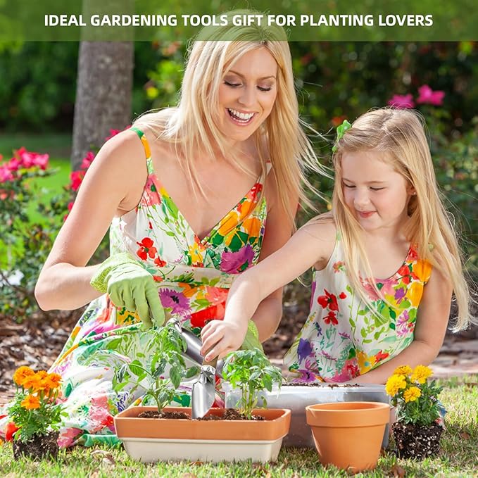 - Premium Garden Set: These gardening tools are made of high-strength stainless steel, guaranteeing corrosion resistance and rustproof for incredibly tough, sharp, and sturdy that will last a long time.
