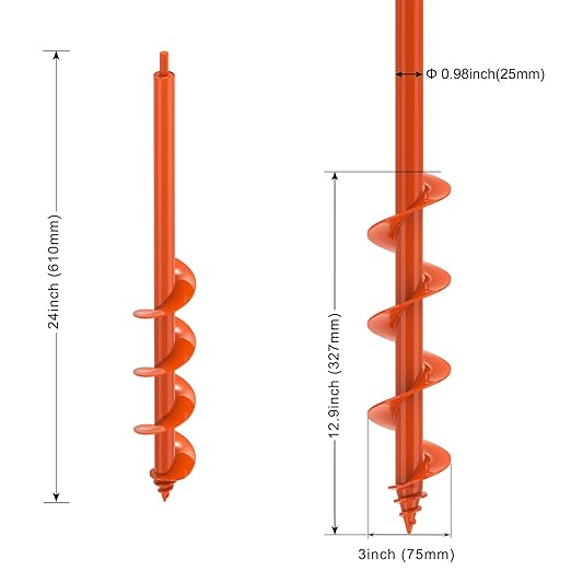 - πΎπππ πͺππππππππππ : Insaga garden auger drill bit for planting made from 0.98" /25mm diameter high strength steel with a heavy duty orange powder coated finish, unique thread screw at the tip design, which get it into the clay, sand and dirt soils easier and faster.