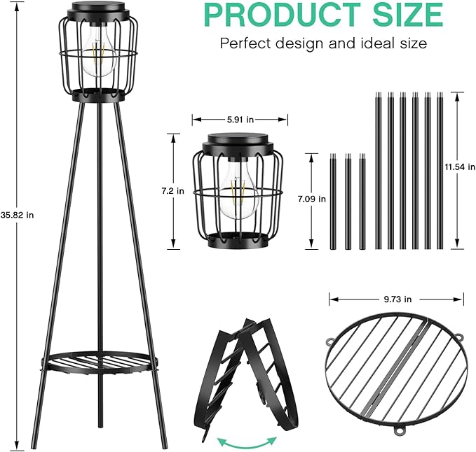 • Innovative Solar Street Light: Unlike traditional solar floor lamps, our 36-inch solar street light features a plant stand concept. This innovative design allows you to place your favorite plants or sundries, tools, etc., adding a touch of fresh nature to your outdoor garden, patio, deck.