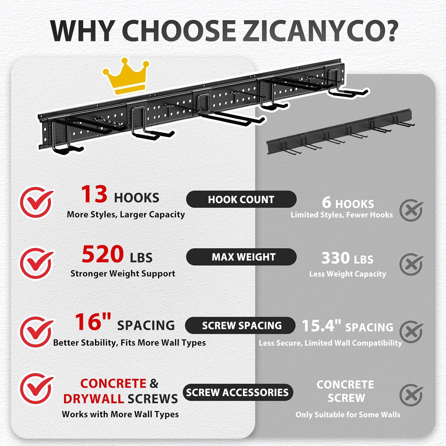 - Stable and Secure: This garage wall organizer with 16-inch screw spacing, it installs firmly into wall studs. We’ve also included screws for drywall mounting, offering added convenience