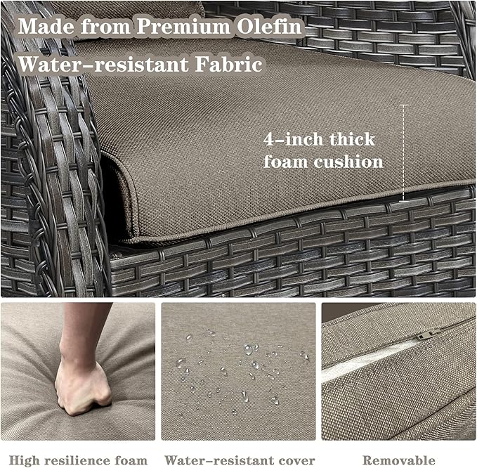 - 4-Piece Outdoor Furniture Set: Elevate your outdoor space with the Belord wicker patio furniture set, which includes an outdoor glider loveseat chair, two swivel rocker chairs, and a multifunctional coffee table with storage for the Belord ottoman. Ideal for porches, decks, balconies, and backyards, Belord outdoor patio furniture set is perfect for relaxing and entertaining in any outdoor setting.
