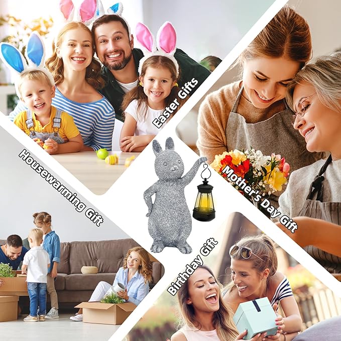 AVEKI Solar Bunny Statue Garden Outdoor Decor, Cute Rabbit Figurines Waterproof Garden Decor with Solar Lantern, Bunny Decor for Yard Art Lawn Porch, Women Gifts for Mom Grandma (Rabbit)