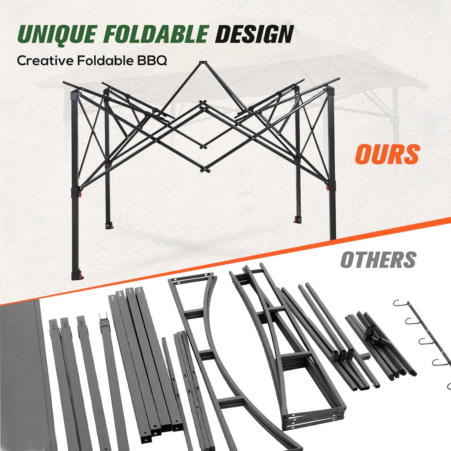 - UNIQUE POP UP DESIGN: No assembly need for this COOS BAY pop up grill gazebo. The central lock allows one person to set up and take down the gazebo in minutes.