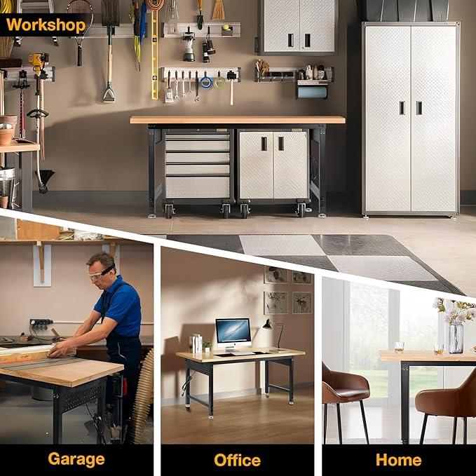 - MULTIFUNCTIONAL WORKSHOP TABLE: The spacious and smooth surface of the wooden table is perfect for use as a craft table, study table, dining table, computer table, which can be widely used in office, garage, garden, to satisfy your needs in various scenarios.