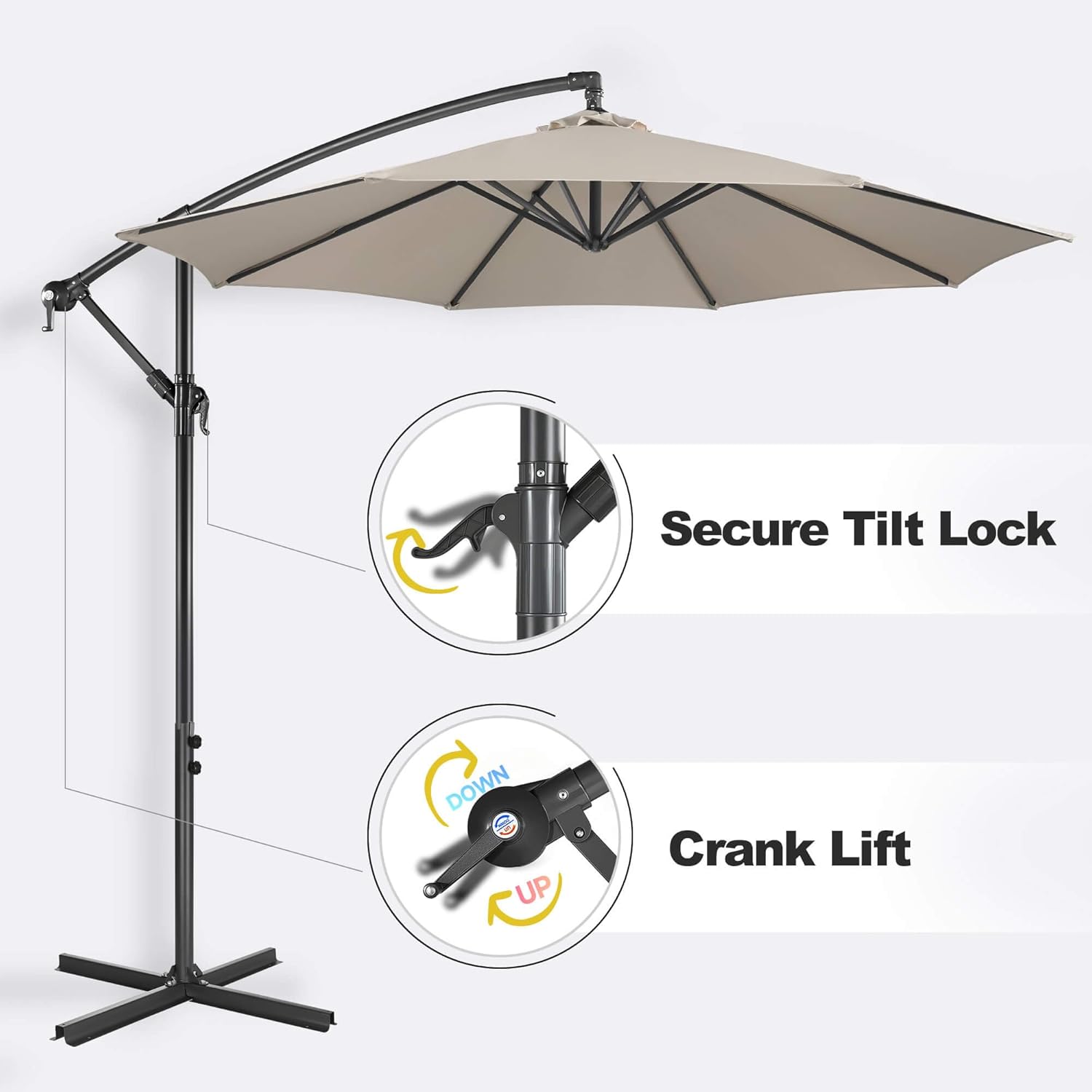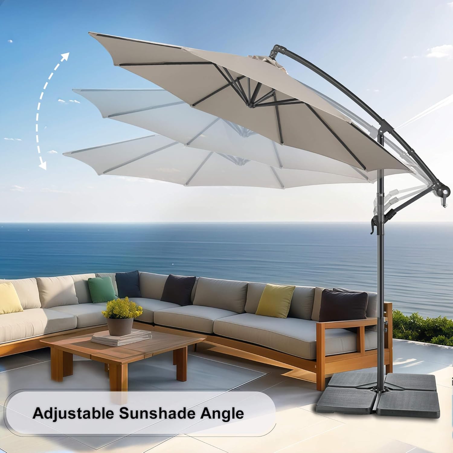 - Note: This cantilever patio umbrellas come with a lightweight cross base (stand only) and requires a minimum 100lbs (45kg) weighted base or sandbags for safe, stable use (compatible bases: B0795SD1JS, B0CKSG7M4W). Protect your investment from rain, snow, and wear with our durable weatherproof cover (B0DRYPXVDW) to double its lifespanโbecause luxury shade should last