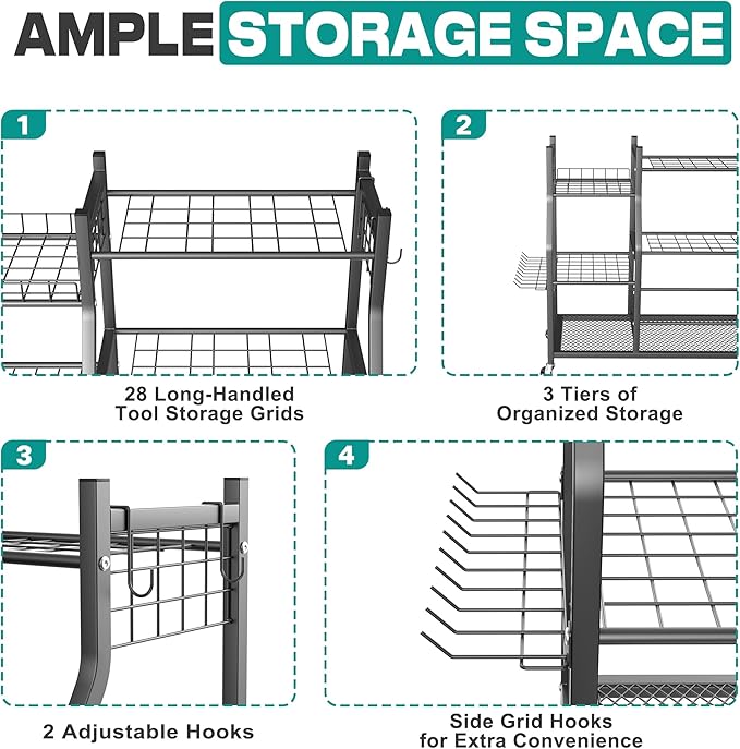 - Rust-Proof Coated Metal Construction: Built with all-metal construction and rust-proof coating, this yard tool rack is corrosion-resistant and durable, designed for heavy-duty storage and long-lasting use