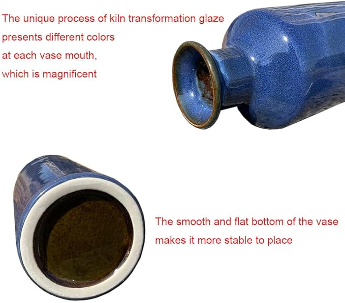 - Advantages: This vase uses kiln enamel technology, and each one has a unique and exquisite pattern, which is very beautiful bright glaze color๏ผBlue๏ผ,you can use it on its own as a beautiful piece, or add faux flowers, stems, bouquets and greens for a pop of color. Office Use, Living Room Decoration, Fireplace, Bathroom, Laundry Room, Coffee Table, Restaurant, Shops, Ideal Book Shelf Decor, Flower Arrangement Decoration ShootingProps, Ceramic Simple Vase, Modern Farmhouse Decor, Wonderful table centerpieces for Wedding, Graduation, Party.