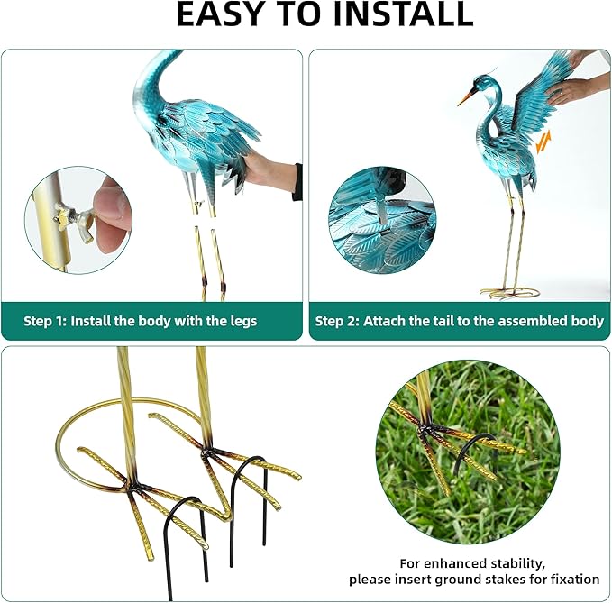 - Durable and Versatile: Crafted from high - quality iron, these metal crane garden statues are both durable and versatile. They are suitable for your garden, backyard, lawn, or even as an indoor decoration, ensuring long - lasting durability and strength.