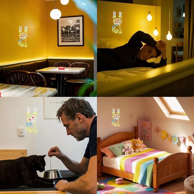 - UNIQUE DESIGN:Charming neon lights to decorate your room, cute and funny cats with horrified expressions with knives and forks to create your space, it creates a unique style and makes the room colorful!