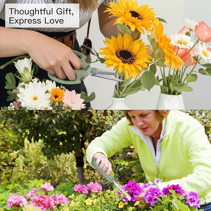 Flower Scissors, Strong Floral Shears,3PCS Premium Steel Garden Pruning Shears Floral Fruits Leaf Scissors Hand Pruner Snip Trimming Tool for Gardening Flower Arrangement, Green