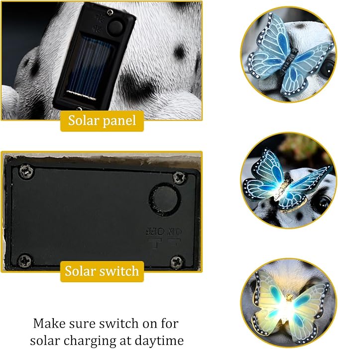 - ▶ Solar Light - Dog garden decor with solar powered, easy to use, can automatically charge the solar energy, light up at night.Energy Efficiency & smart models:with solar-powered, energy saving and energy efficiency.