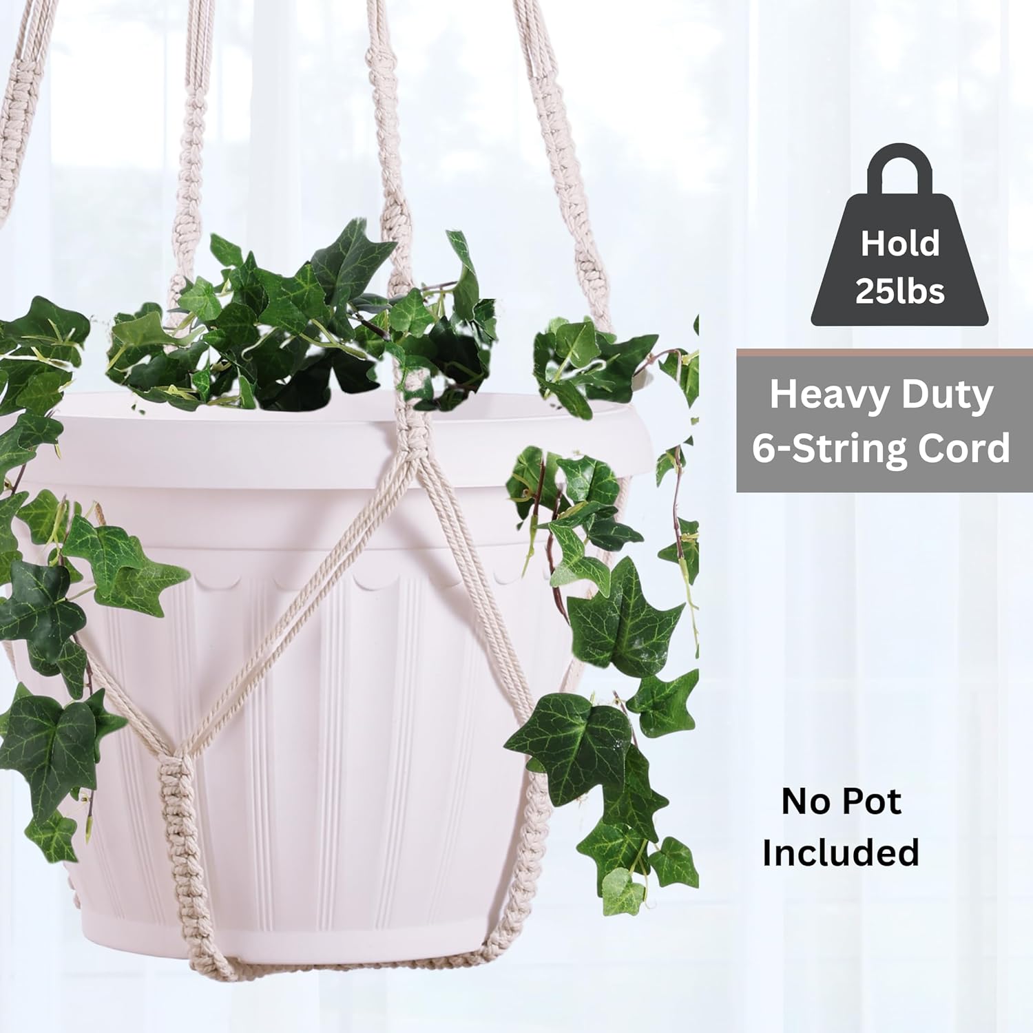 - 【❤ Giant XXL Plant Hangers】-Enhance your space with our hand-made macrame plant hangers, each boasting an impressive 55-inch length and 6-cord sturdy thread. Designed to accommodate substantial 12-15 inch flower pots, this hanging planter features a clean design without tassels. (Note: Plant or Pot not included.)