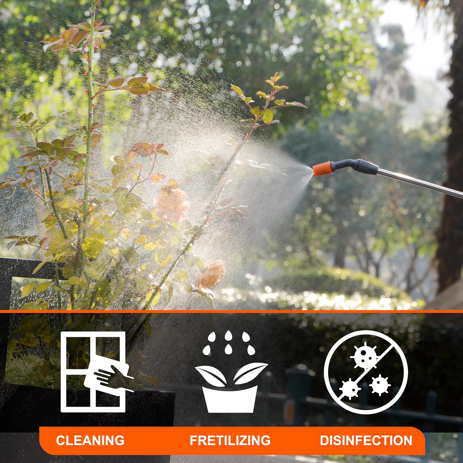 - 【Retractable Wand 】The home garden sprayer offers a variety of spray patterns from straight stream to a very fine mist and anything in between with its rotatable spray tips allowing you to customize the way your water will spray.This portable sprayer bottle is leak free, so you don’t need to worry about water leakage and mess.The retractable wand can extend to 28 inches to help you spray hard-to-reach places.