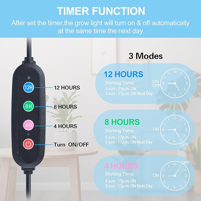 - Smart 4-8-12H Timer---Auto Cycles for Perfect Plant Care (Set It & Forget It!)