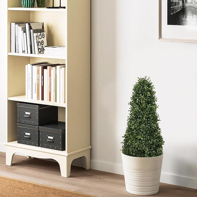 - Lifelike & Elegant Design – This artificial boxwood topiary tree features realistic foliage, varied leaf shapes, and a faux bark trunk, creating a natural look with rich green tones that enhances any space