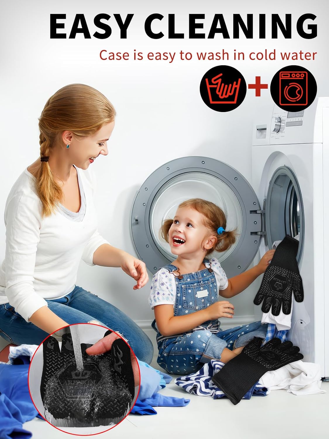 - Unmatched Heat Resistance: Our BBQ oven gloves are designed to 1472°F (800°C) withstand extreme heat, ensuring safe handling of hot grills, pans, and oven trays. Perfect for all your high-temperature cooking needs.