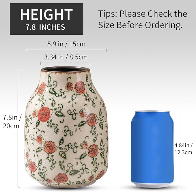 - EXQUISITE HAND-PAINTED DESIGN: The SURE YUESI chinoiserie vase features a stunning hand-painted red rose motif on a green and beige crackle glaze background. Its vintage aesthetic and elegant round shape make it a perfect addition to your chinoiserie decor or grand millennial home style.