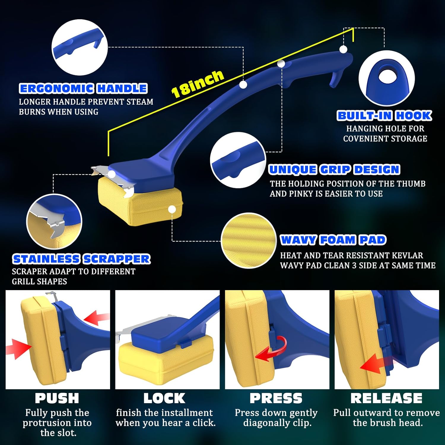 - The brush head is constructed from high-quality, heat-resistant Kevlar fabric capable of withstanding temperatures up to 600ยฐF. This specially made materials meet the requiremnet who want durable and abrasion-resistant scrubbing for consistently clean grills. The detachable brush head is dishwasher-safe and features a secure clip mechanism for added stability. After cleaning, the brush can be hung to dry, ensuring long-term usability.