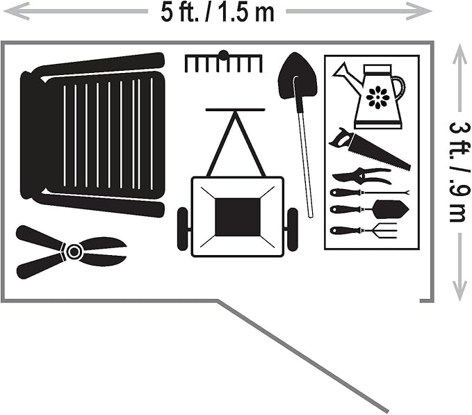 - 5' x 3' OUTDOOR STORAGE SHED: Designed with 60" walls to provide ample height for you to store all your gear and tools comfortably, offering a practical storage solution for lawnmowers, bicycles, patio furniture, and other bulk storage