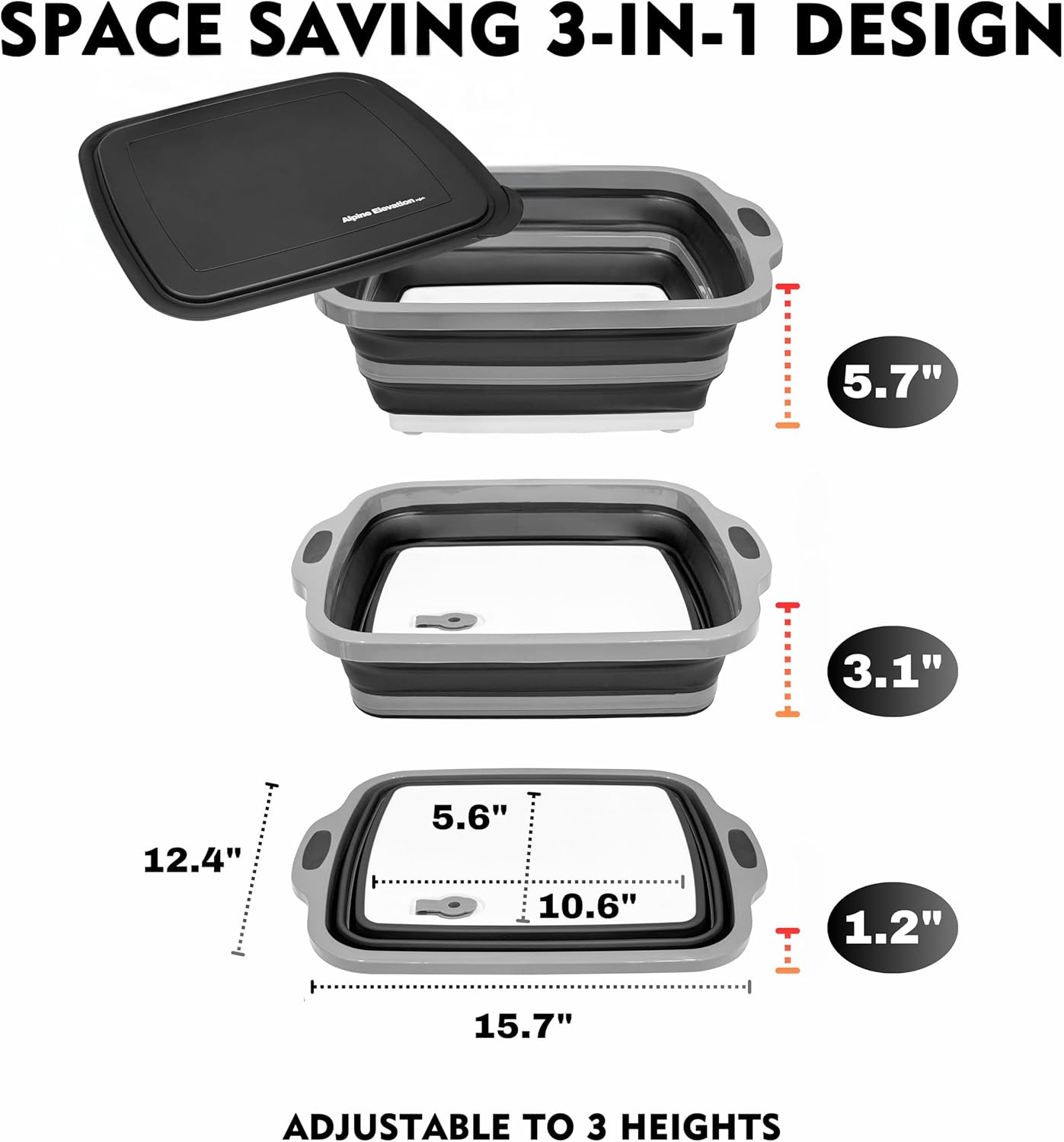 - Shape-Shifting Magic โ Collapsible Design โ Use fully expanded for large meal prep, half-collapsed for small batches, or fully flat for slicing or serving. Folds down to 1.5" for easy storageโperfect for camping, BBQs, RVs, tailgating, and small kitchens.