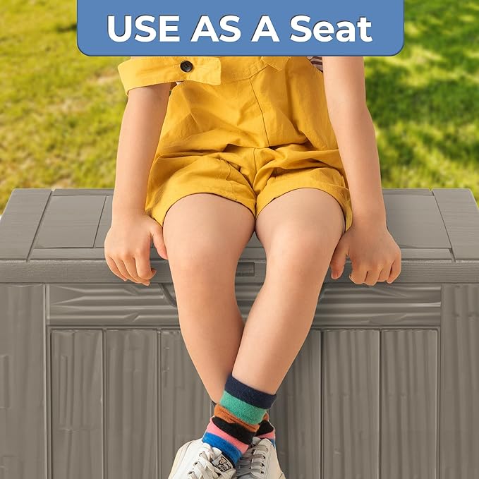 35 Gallon Resin Deck Box, Waterproof Outdoor Storage Bin for Patio, Poolside, and Garden, Lockable & UV-Resistant,Grey