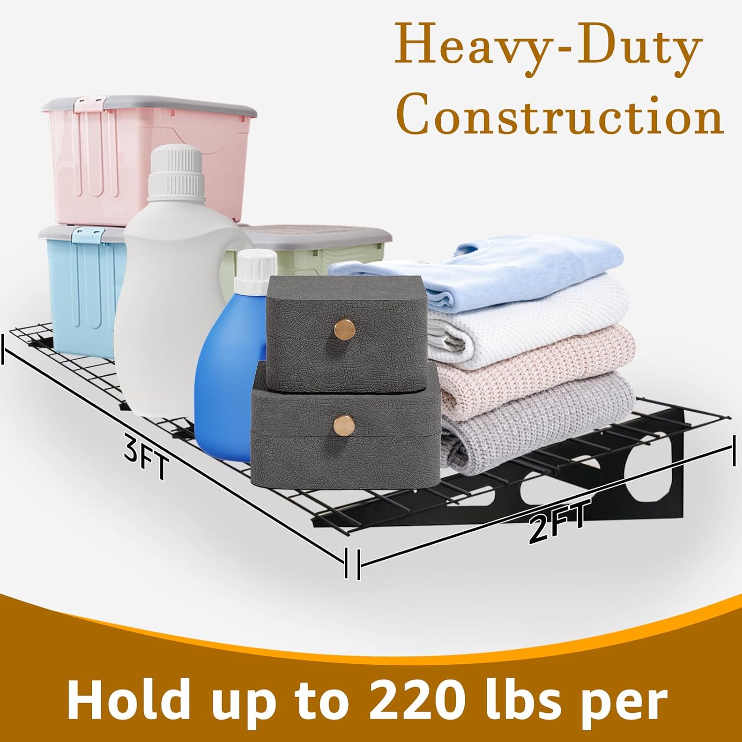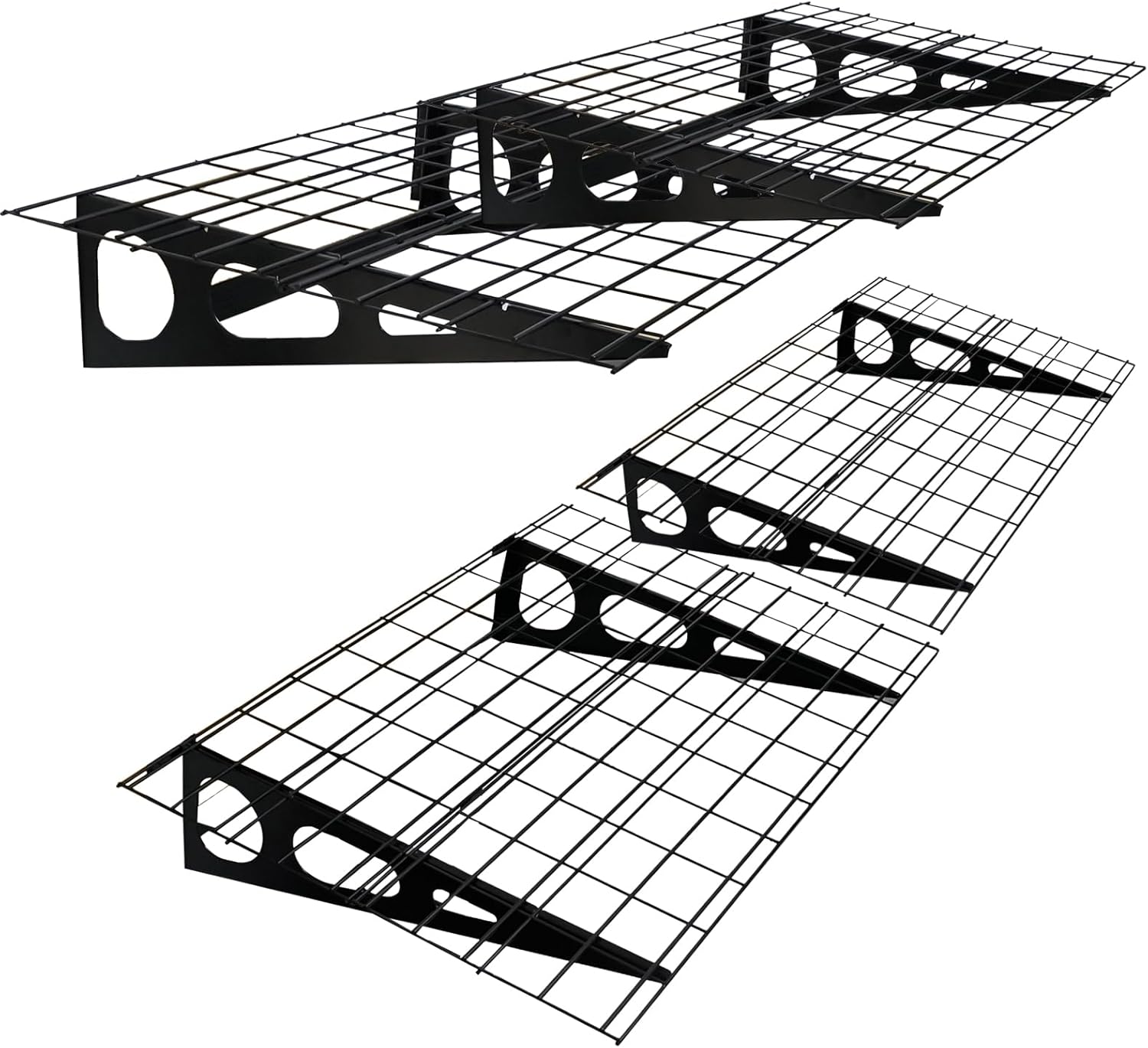 - All Components: 4PCS Right Support frame/ 4PCS Left Support frame, 8PCS Wire grids (1*3FT), 24 PCS Screw. Crafted from resilient heavy-duty steel, the garage wall shelves are built to endure