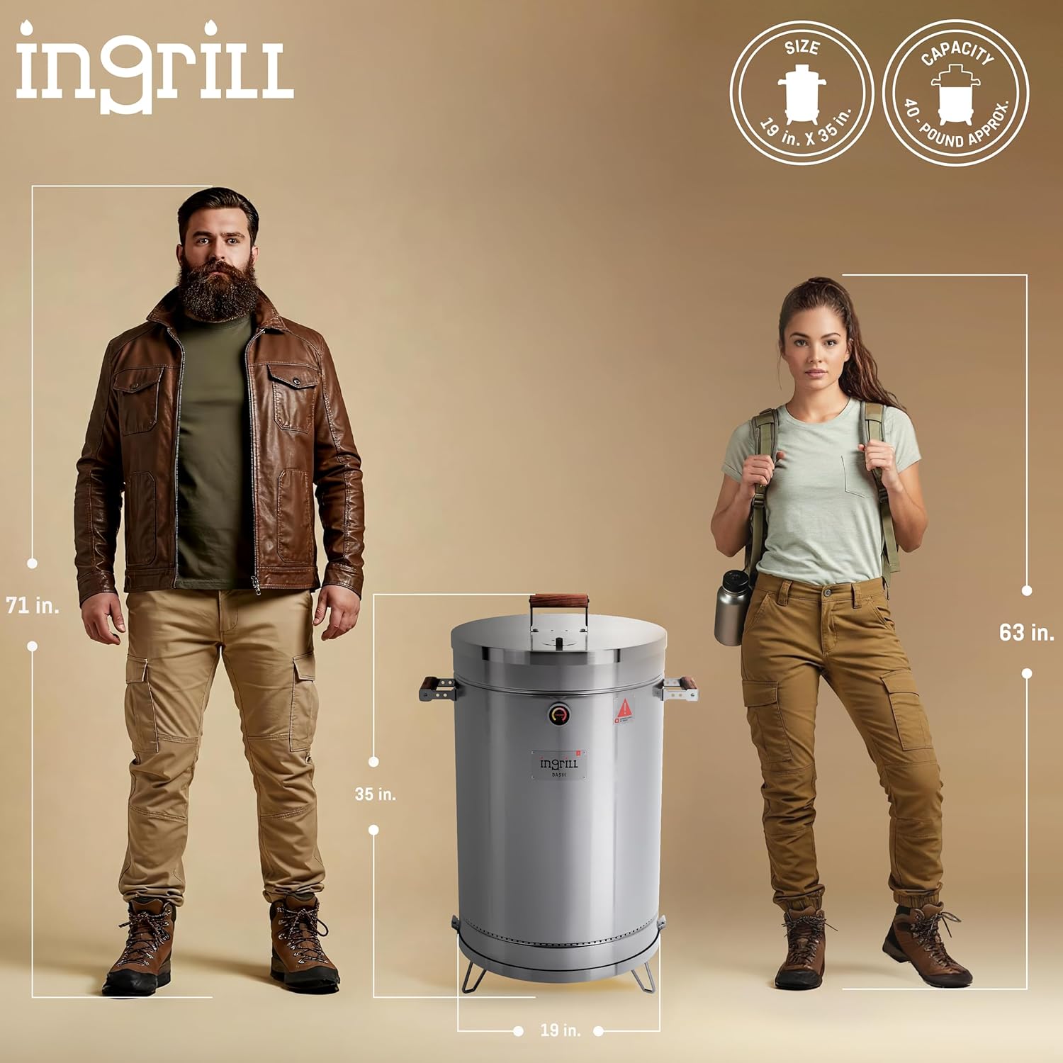- EXPERIENCE INFINITE POSSIBILITIES WITH EFFORTLESS COOKING - The InGrill isnโt just a barrel smoker, itโs your 3-in-1 grill, smoker, and outdoor oven. Sear juicy steaks, slow-smoke tender brisket, ribs, or bake pizzas with unmatched flavor. From classic BBQ to gourmet creations, this versatile smoker handles beef, pork, turkey, chicken, seafood, vegetables, and even fruits to perfection. Endless possibilities, mouthwatering results every single time.