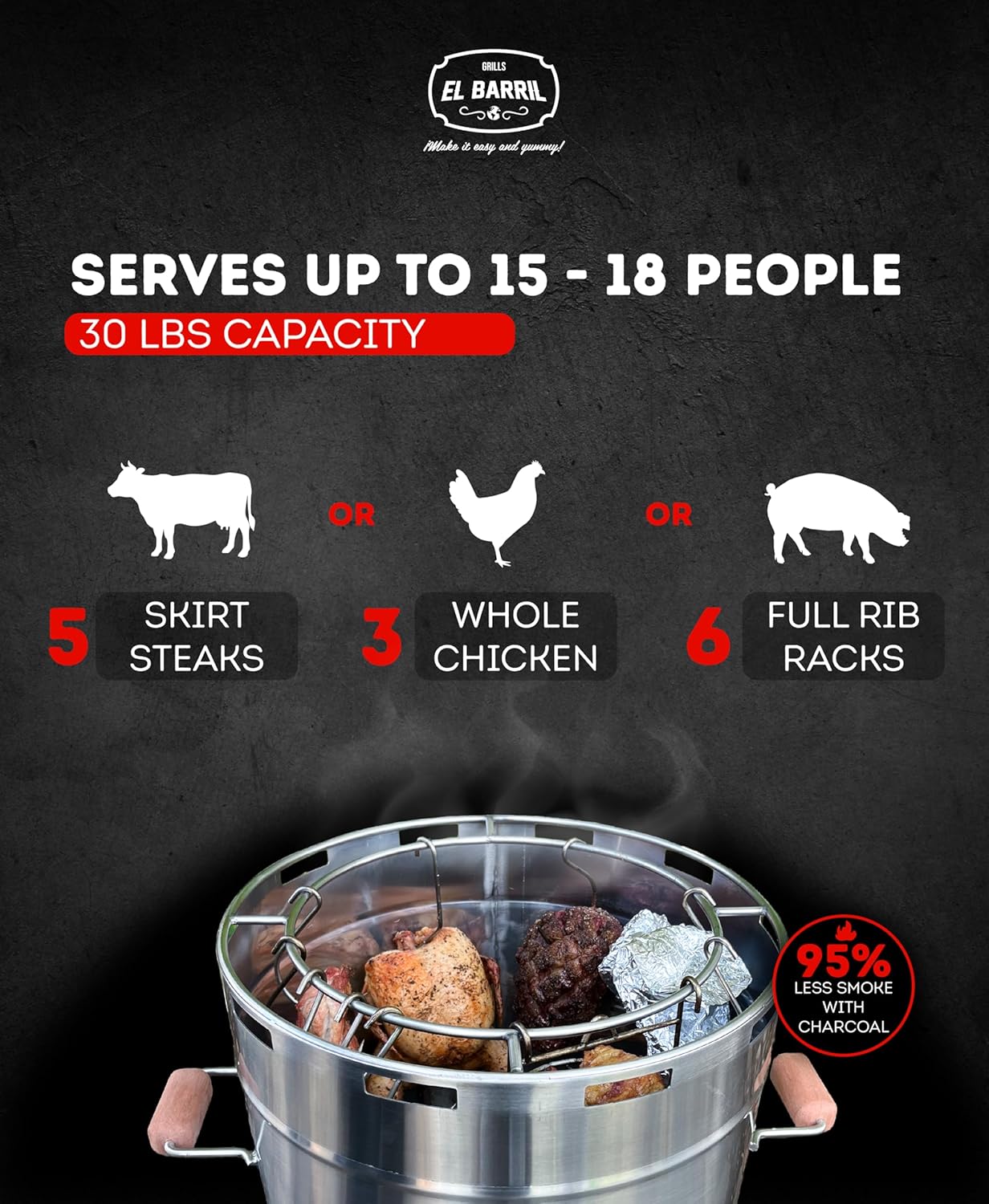 - AUTHENTIC CHARCOAL FLAVOR WITH EVERY COOK: Designed specifically for charcoal smoking, the El Barril Lite Medium produces that rich, smoky flavor BBQ enthusiasts crave, bringing true outdoor flavor to every meal.