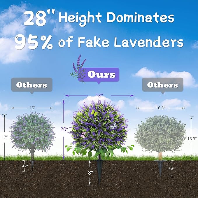 - 【Premium 28" Height, Superior Presence】At 28 inches, our tall artificial shrub ball surpasses 95% of fake lavender plants in market height while maintaining perfect proportions. The artificial outdoor faux plants with a full and rounded canopy creates dramatic impact without overwhelming patio planters or indoor spaces