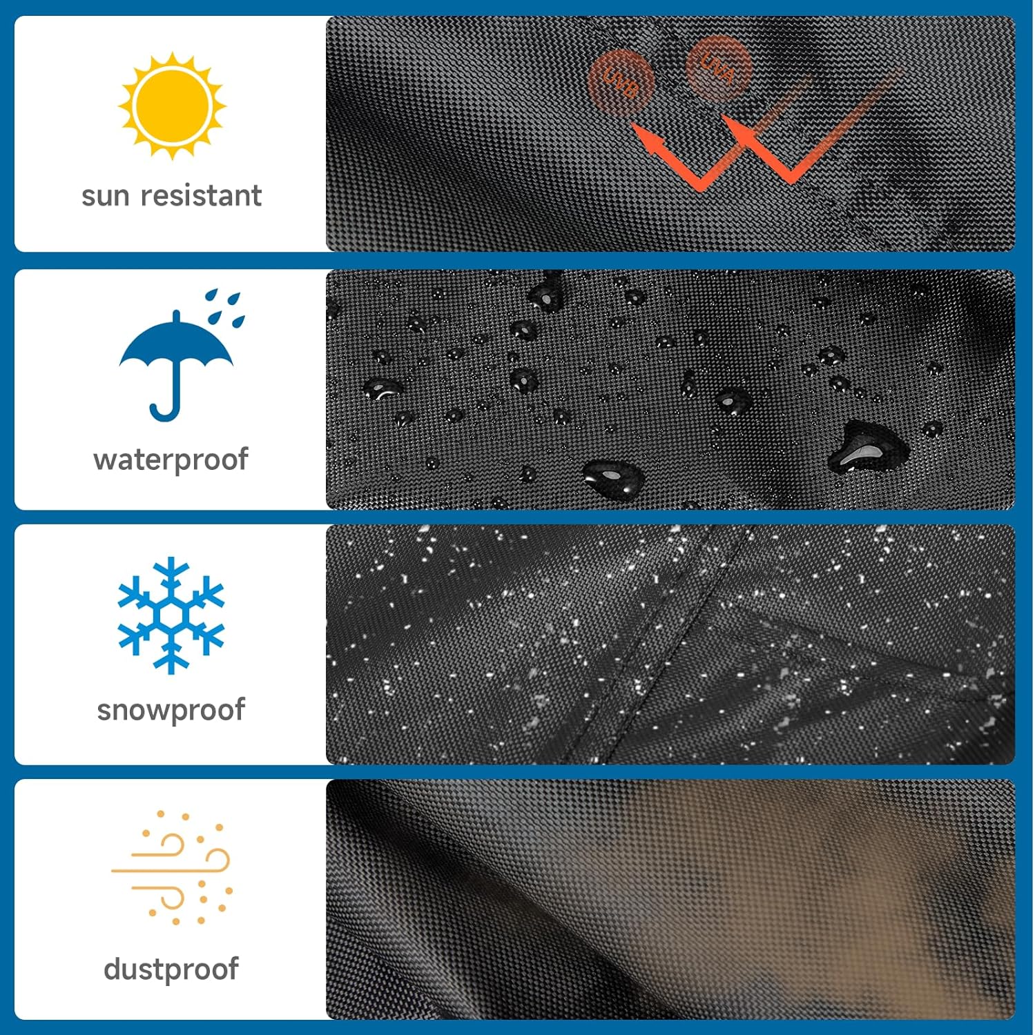 - Premium Protection:The 5-burner gas griddle cover is crafted from heavy-duty 420D oxford fabric with a PU coating, which is waterproof, UV-resistant and anti-tear for long-lasting protection against sun, rain, dust and snow.