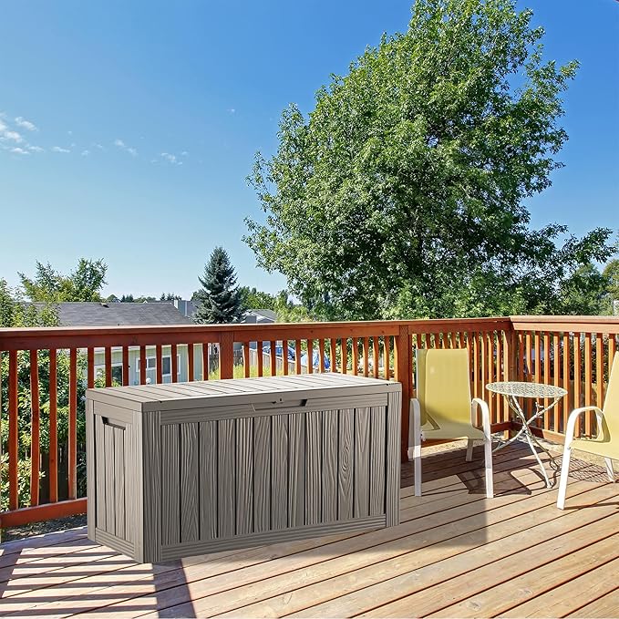 - Material: The patio outdoor storage box is made of the latest high-quality resin material, which makes this patio deck storage box waterproof,UV-resistant, anti-fading, and anti-bending protection, suitable for long-term outdoor use.